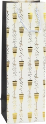 Ta darilna vrečka za steklenico združuje reprezentativen videz in funkcionalnost. Učinkovit potisk kozarcev in mehurčkov z zlatim poudarkom vsakemu darilu doda slavnosten ton – primerna za poroke, rojstne dni, obletnice, silvestrovanja in poslovne dogodke. Univerzalna dimenzija varno sprejme večino standardnih steklenic.