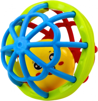 Odkrijte zabavno in spodbudno senzorično žogico za dojenčke, ki podpira naravni razvoj otroka. Mehki, elastični gumijasti material je nežen do dlesni in ročic, omogoča stiskanje, prijemanje in občasno grizljanje. Zaradi raznolikih tekstur in izrazitih barv žogica spodbuja tip, vid in sluh.