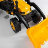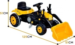 Rumeni pedalni traktor s sprednjim nakladačem je odlična igrača za otroke, ki želijo začeti odkrivati svet pedalnih vozil. Zahvaljujoč funkciji nakladača si lahko otroci naložijo svoje najljubše igrače in se odpravijo na razburljivo pustolovščino.