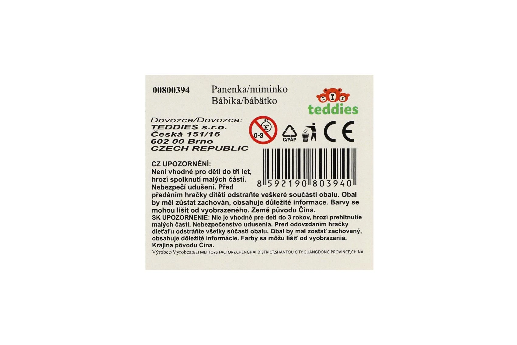 Punčka združuje mehko tekstilno telo s podrobno oblikovano glavico in okončinami za avtentičen videz in prijetno crkljanje.