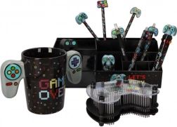 Črna keramika z barvnim piksel napisom in ikonami bo vaši mizi dodala gamersko atmosfero ter je odlična kot darilo za igralce.