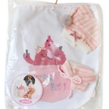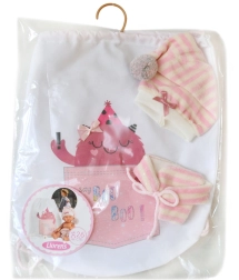 Ta eleganten komplet vsebuje dva kosa oblačil in praktičen nahrbtnik, ki punčki doda modni videz. Izdelano s skrbnostjo in ljubeznijo v Španiji, kar zagotavlja visoko kakovost in izvirnost izdelka.