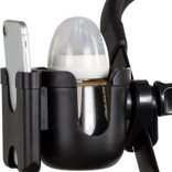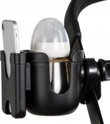 Nosilec za steklenico in telefon je idealna izbira, če želite imeti pijačo in telefon vedno pri roki. Univerzalnost in enostavna montaža ga naredita nepogrešljivega pomočnika za starše na poti. Zasnovan je tako, da se prilega tako vozičku kot kolesu ali na primer hodilniku.