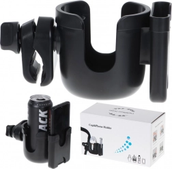 Ta nosilec je primeren za različne vrste steklenic, bidonov, termosov in telefonov. Štiri prilagodljiva 'ušesa' zagotavljajo varno pritrditev pijače brez skrbi za razlitje. Odprte strani omogočajo enostaven dostop do vsebine. Predel za telefon omogoča, da imate svoje naprave vedno na očeh, tako da ne zamudite nobenega pomembnega sporočila.