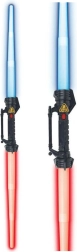 Meč je opremljen s svetlobnimi in zvočnimi učinki, ki se aktivirajo ob vklopu. Ti učinki, ki jih napajajo priložene baterije, omogočajo še bolj napete in poglobljene igralne prizore. Ročaj iz trpežne plastike deluje kot tehnologija prihodnosti, medtem ko se teleskopsko rezilo gladko raztegne in sveti v rdeči ter modri barvi. Odlična izbira tako za vsakodnevno igro kot za galaktične kostumske dogodivščine.