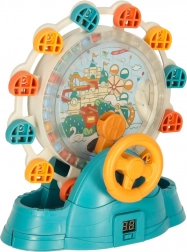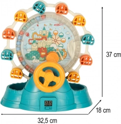 Ta fantastični vrtiljak je opremljen z volanom in toboganom za žogice, kar je odlična kombinacija za zabavno in aktivno igro. Otroci lahko razvijajo svoje motorične spretnosti pri vstavljanju in lovljenju žogic, medtem ko svetlobni in zvočni učinki zagotavljajo dodatno dimenzijo zabave.