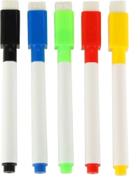 Ena stran je za pisanje s flomastri, druga pa za risanje s kredo, kar ponuja več možnosti za ustvarjalnost.