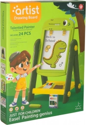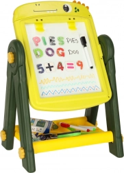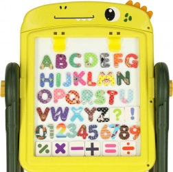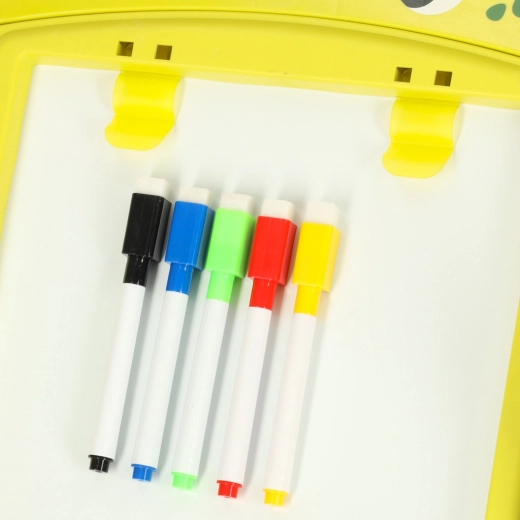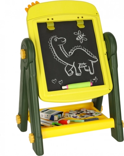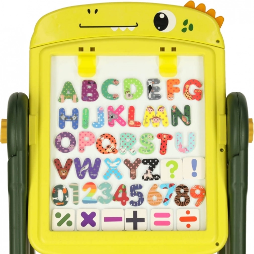Ta obojestranska izobraževalna tabla je idealno orodje za razvoj ustvarjalnosti in učenja pri otrocih. Na eni strani je magnetna bela površina, ki omogoča suhoizbrisno risanje in pisanje s flomastri, medtem ko druga stran služi kot klasična črna tabla za risanje s kredo. Okrašena z veselim dinozavrskim motivom bo ta tabla očarala vsakega otroka s svojo barvitostjo in možnostmi uporabe.