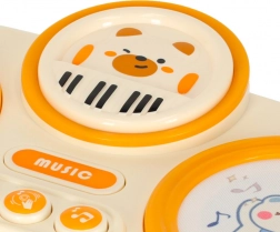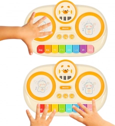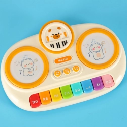 Interaktivno klavirček za otroke v bež barvi ponuja šest različnih zvočnih načinov, deset veselih melodij in DJ način za kreativno zabavo z zvokom.