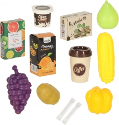 Vsebuje 36 delov, vključno s sadjem, zelenjavo, jogurti, pijačami in drugimi artikli, pa tudi igralni telefon in barvite nalepke. Ta varna in trpežna igrača je izdelana z mislijo na varnost otrok, brez ostrih robov, in je idealna za ustvarjalne scenarije ter realistične izkušnje.