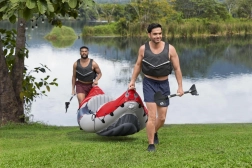 Odpravite se na vodo z dvosedežnim napihljivim kajakom Bestway, idealnim sopotnikom za rekreacijske vožnje po jezerih ali bazenih. Ta kajak je izdelan iz odpornega vinilnega materiala, ki je odporen proti poškodbam. Prostoren in udoben kokpit je opremljen z dvema napihljivima sedežema z mehkimi naslonjali, kar zagotavlja udobje tudi med daljšimi vožnjami.