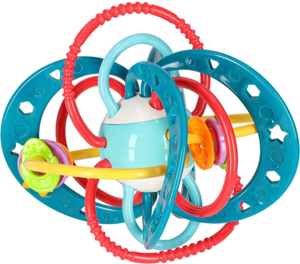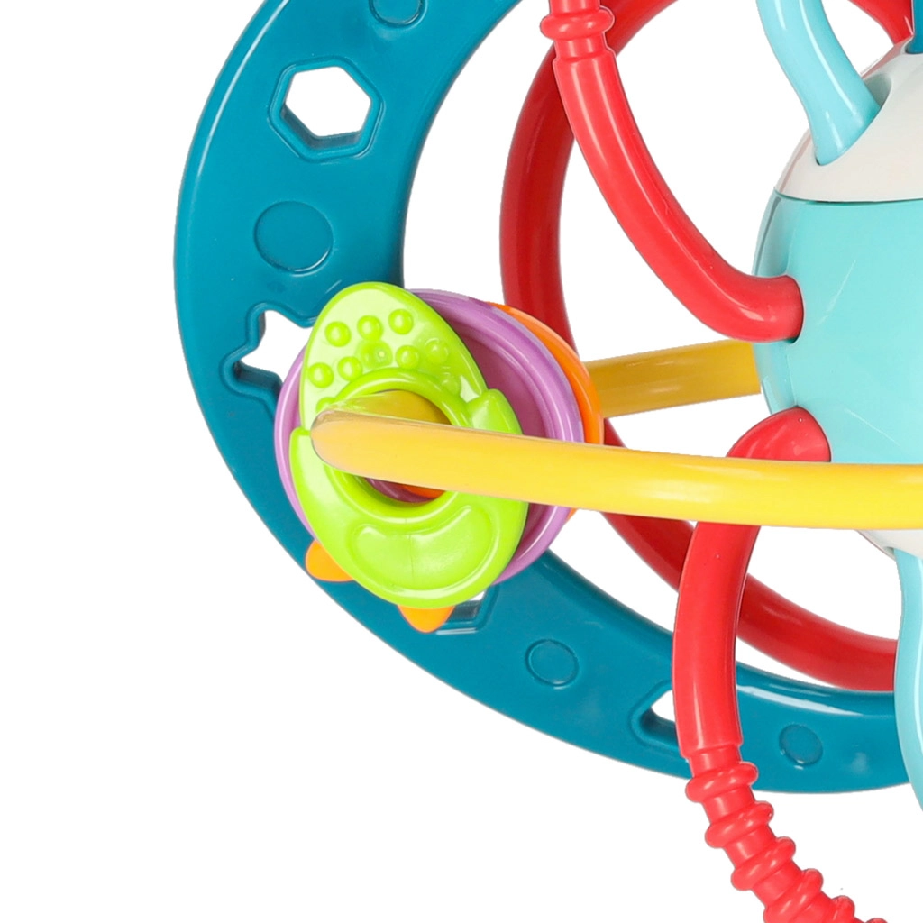 Različne površine nežno masirajo dlesni in prinašajo olajšanje pri izraščanju zobkov, medtem ko premični obročki zabavajo otroka.