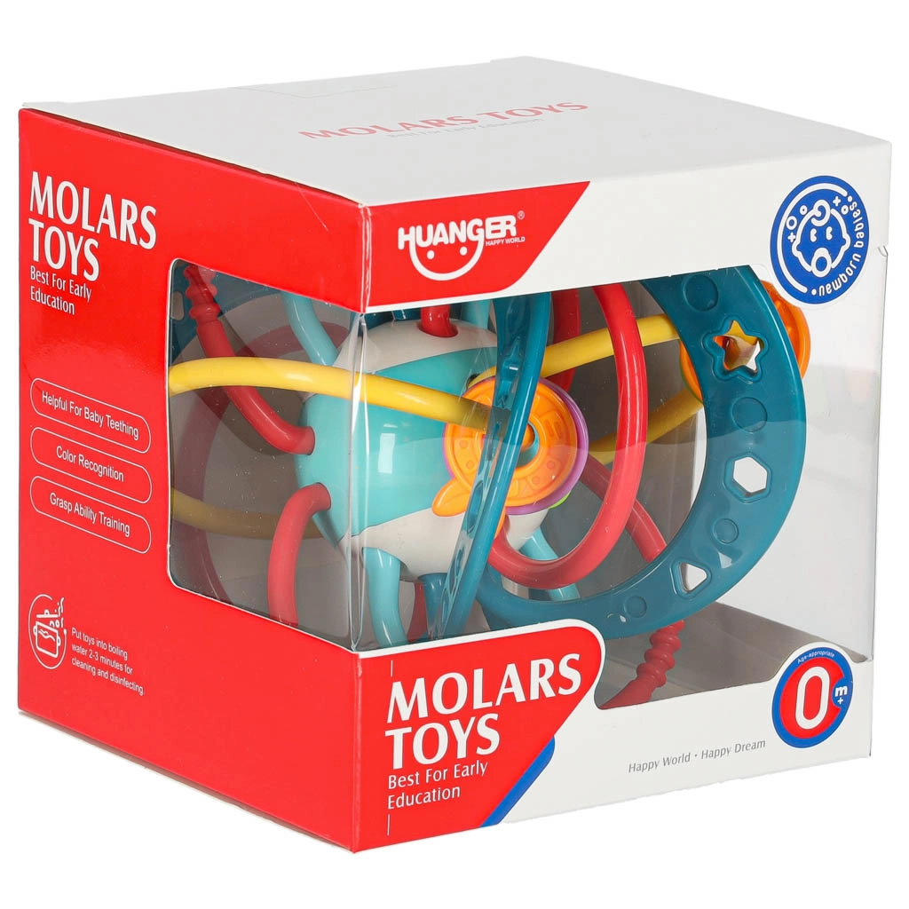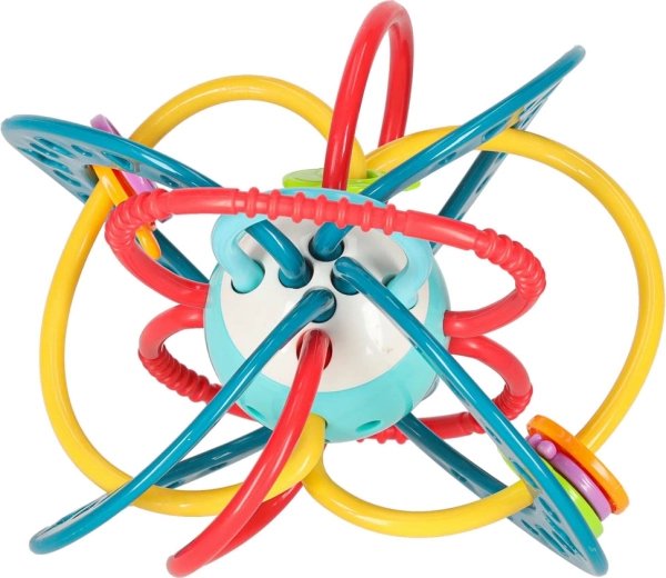 Barvito senzorično grizalo z ropotuljico spodbuja otroke k prijemanju, grizenju in stresanju. Raznolike teksture lajšajo izraščanje zobkov, krepijo fino motoriko in podpirajo vidno ter slušno zaznavanje. Varna zasnova brez ostrih robov iz netoksičnih materialov.