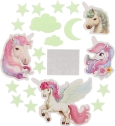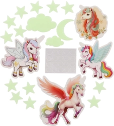 Ustvarite otrokom čarobni svet kar v njihovi sobi. Svetleči samorogi se po osvetlitvi zasvetijo in pričarajo nežno svetlobo, ki pomirja in pomaga pri uspavanju. Komplet vsebuje različne oblike in velikosti samorogov za ustvarjalno dekoriranje sten in stropa.