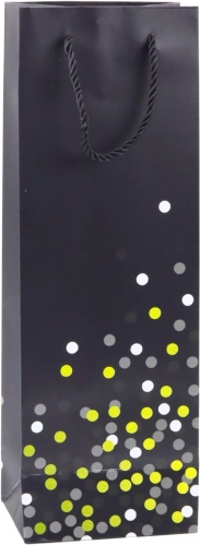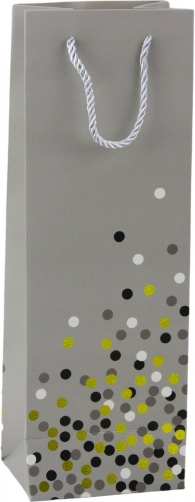 Darilna vrečka je izdelana iz visokokakovostnega papirja z ustrezno gramatura, kar zagotavlja odpornost proti mečkanju in dobro nosilnost. Vrvicna ročaja sta udobna za prenašanje in omogočata varno držanje vsebine. Sodobna zasnova z nežnimi, sijočimi poudarki vrečki dodaja izjemen značaj.