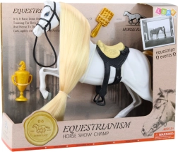 Set s čudovitim konjem je popoln za vse male ljubitelje konj. Vsebuje zlati pokal, krtačo za grivo, sedlo in uzdo, ki dodajo na realističnosti in otroku omogočijo pripraviti konja na različne aktivnosti, kot so ježa ali tekmovanja. Vsak element je bil skrbno zasnovan za maksimalno zabavo in razvoj ustvarjalnosti.