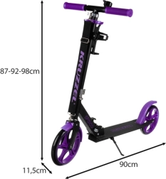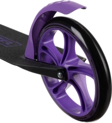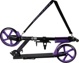 Ta črno‑vijolični skiro je odlična izbira za otroke od 8 let naprej in starejše voznike, ki želijo udobna in varna mestna premikanja. Velika 200-mm kolesa blažijo neravnine in zagotavljajo stabilnost, medtem ko protizdrsni stopalni del in zanesljiva nožna zavora nudita nadzor v vsaki situaciji. Zložljiv mehanizem in nastavljiv trak olajšata prevoz in shranjevanje.
