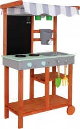 Ta odporna in stabilna kuhinja je posebej zasnovana za zunanjo uporabo, da se upre tako grobi igri kot tudi vremenskim vplivom. Kuhinja je brez ostrih robov in njena ergonomska zasnova je varna za vsakega malega kuharja.