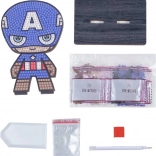 Diamantno slikanje ponuja edinstven način preživljanja časa s sprostitvijo in ustvarjalnostjo. Ta dejavnost je idealna tako za posameznike kot za skupine. S pomočjo aplikacijskega peresa nanašajte kamenčke na označena mesta in opazujte, kako pred vami oživi podoba Stotnika Amerike. Paket vsebuje vse potrebne elemente za udobno in zabavno ustvarjanje: