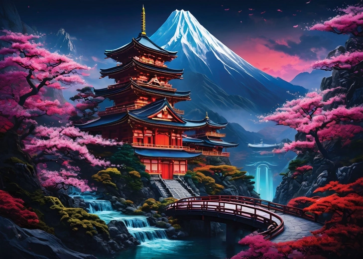 Odkrijte lepoto japonske kulture s sestavljanko Duh Japonske, ki ponuja dve sliki po 500 koščkov. Vsaka slika je umetniško delo, ki ujame bistvo Japonske.