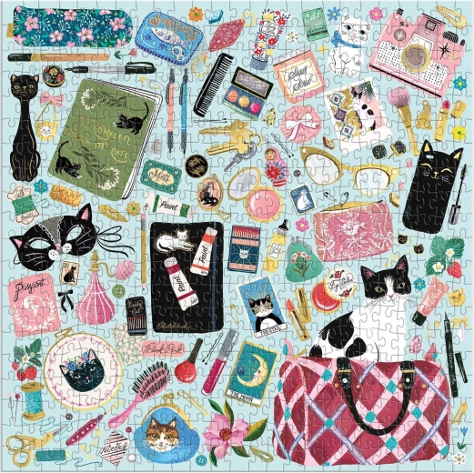Kvadratne sestavljanke 500 kosov z motivom Mačji dodatki. Odlična zabava za ljubitelje mačk, dimenzije po sestavljanju 51 x 51 cm.