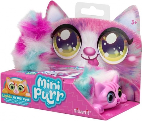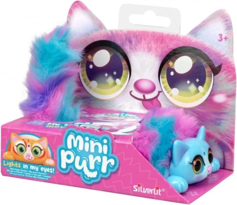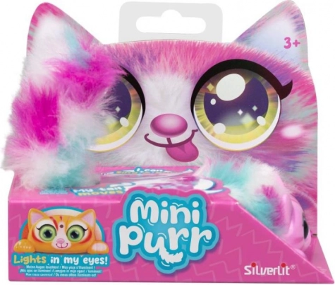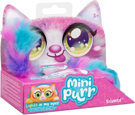 Odkrijte pisano interaktivno mucko Mini Purrs, ki zasveti in prede, ko jo pobožate. Reagira na pihanje in ročno premikanje repa.