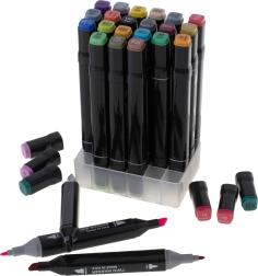 Ta vsestranski komplet je odlična izbira za začetnike in napredne – arhitekte, ilustratorje, grafične oblikovalce in hobi ustvarjalce. Z dvema konicama zlahka prehajate z velikih površin na detajle ter ustvarjate čiste linije in gladke prehode. Praktični tekstilni etui in plastično stojalo poskrbita, da so vsi flomastri pregledno pri roki doma, v šoli in na poti.