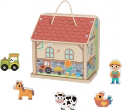 Moja prva kmetija z živalicami je idealna igrača za otroke, ki se želijo hkrati učiti in zabavati. Ta kmetija otrokom omogoča prepoznavanje živali s pomočjo prikupnih ilustracij ter jih uči osnovnih informacij o dogajanju na kmetiji. Zadnja stena kmetije je preklopna in poslikana na obeh straneh, kar prinaša dodatno raven interaktivne igre.