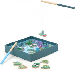 Vsebina kompleta vključuje 12 lesenih magnetnih žab, 2 leseni palici z magnetom in 1 igralno škatlo/osnovo. To igro je mogoče igrati od 2 leta starosti dalje in je idealna za 2 igralca.