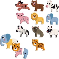Set magnetov Vilac Smešne živali predstavlja deset živali, vsaka sestavljena iz treh kosov. Kombinirajte jih po svoji domišljiji in ustvarite edinstvene in zabavne živalske kombinacije - na primer glava tigra, telo krave in rep slona. Zahvaljujoč temu igralnemu setu ni meja vašemu ustvarjanju in domišljiji.