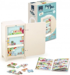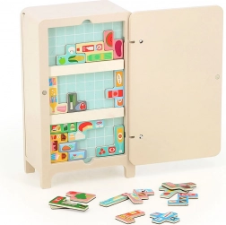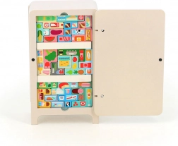 Igra z oblikovanjem Ingele P. Arrhenius vključuje leseno hladilnico, dve magnetni polici in 21 magnetov s hrano. Otroci lahko ustvarjajo lastno razporeditev v hladilnici, kar spodbuja njihovo ustvarjalnost in sposobnost reševanja problemov. Priložena knjižica z navodili ponuja 7 različnih rešitev.