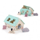 Odkrijte slikovito leseno hišico Sarah Betz z vključenimi živalicami, kot so kužek, miška, mucka in zajček. Ta Montessori navdihnjena igrača spodbuja spretnost, koordinacijo in domišljijo otroka.