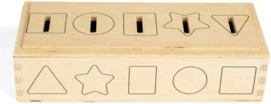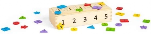 Uporabite to inovativno škatlo za vajo prepoznavanja števil, barv in oblik. Otroci lahko vstavljajo žetone različnih barv in oblik, označene s številkami od 1 do 5, v ustrezne odprtine. Zahvaljujoč obojestranskemu snemljivemu pokrovu je rokovanje preprosto in zabavno.