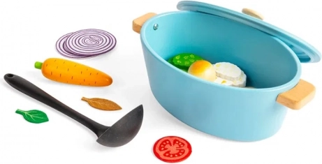 Peka posoda z zelenjavo Bigjigs Toys je popoln dodatek vsaki otroški kuhinjici. Komplet vsebuje: