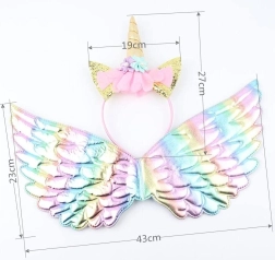 Mavrična krila se zlahka pripnejo z elastičnimi trakovi, kar omogoča svobodno gibanje. Barvitost kril izžareva čar pravega samoroga.
