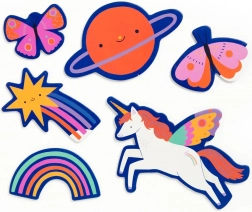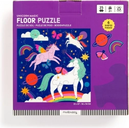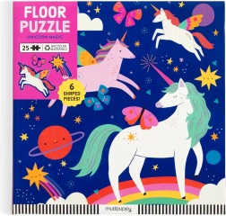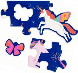 Odkrijte čudoviti svet samorogov s talnimi puzzlami s 25 kosi, ki vključujejo metulje, zvezde in komete. Ekstra veliki natančno izrezani kosi so primerni za majhne otroške roke in urijo koordinacijo oko–roka. Otroci hkrati razvijajo sposobnost reševanja problemov in fino motoriko.