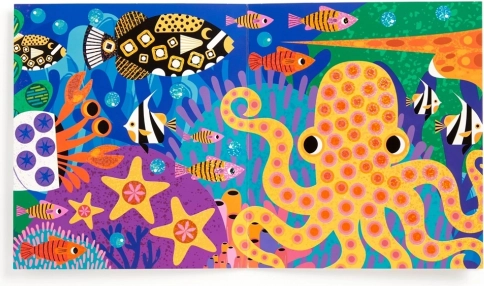 Podajte se na čarobno pustolovščino, polno prikupnih bleščečih podob in živahnih barv! Ta komplet nalepk vključuje pisano podvodno sceno z več kot 200 bleščečimi holografskimi nalepkami. Otroci lahko oživijo in poživijo koralni greben s pomočjo nalepk.