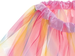 To barvito tutu krilo je odličen dodatek za šolske in vrtčevske nastope, plesne ure in kostumske zabave. Tri plasti nekoliko čvrstejšega, nabranega tila lepo držijo obliko in ustvarjajo izrazit volumen.