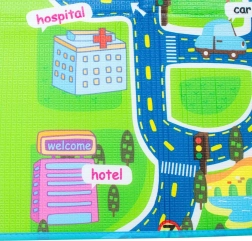 Ta enostranska igralna podloga z mestnim motivom daje otrokom varno mesto za igro. Izolira pred mrazom in ščiti pred trdimi udarci. Podloga je enostavna za prenašanje zaradi termoizolacijske plasti na spodnji strani.