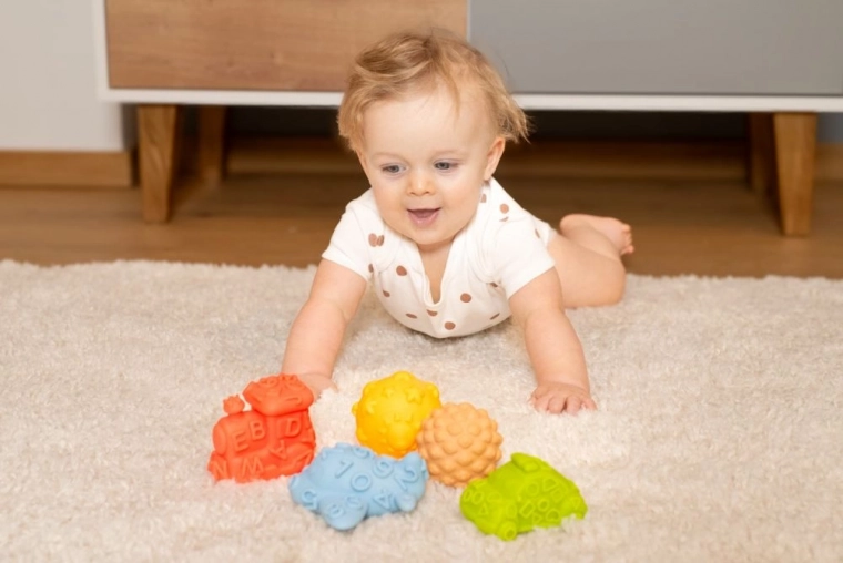 - Razvoj čutov: Žogice in vozila spodbujajo motorične spretnosti in koordinacijo.