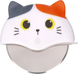 Ta oblikovalski rezalnik za pico z mačjim motivom bo navdušil vsakega ljubitelja pic in ljubkih kuhinjskih dodatkov. Nerjavni vrtljivi kolut z debelino rezila 0,8 mm zagotavlja čist rez brez trganja, medtem ko ergonomski plastični ročaj zanesljivo leži v roki.
