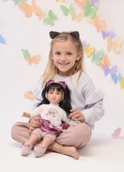 Ta kakovosten komplet oblačil bo vaši punčki dodal šarm ter otrokom omogočil razvijanje domišljije pri preoblačenju in izmišljanju zgodb. Ročna izdelava iz Španije zagotavlja natančno obdelavo in prijetne materiale, primerne za otroške roke.