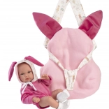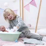 Ta realistična dojenčkova punčka znamke Llorens ima celovinilno telo, kar omogoča kopanje. Vsaka podrobnost dojenčkovega telesa je natančno upodobljena, vključno z ljubkimi gubicami in spolom, kar prispeva k pristni igri. Pozor pri kopanju: priporočamo, da se izogibate močanju trepalnic. Odlepljene trepalnice ne bodo upoštevane kot razlog za reklamacijo.
