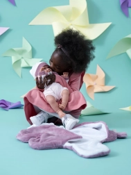 Dojenček ima mehko tekstilno telo s sklepnimi rokami in nogami, kar omogoča enostavno pozicioniranje in sedenje. Duda v pakiranju služi kot privlačen dodatek. Punčka je ročno izdelana v Španiji in je del ekskluzivne darilne škatle.