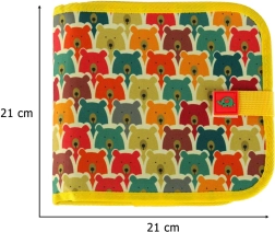 Zaradi vodoodpornih tekstilnih platnic z veselimi motivi medvedkov in zapiranja na ježka je knjižica trpežna, priročna in varno ostane zaprta v nahrbtniku. Podpira učenje črk, številk in svobodno ustvarjalno risanje, s čimer razvija domišljijo in fino motoriko.