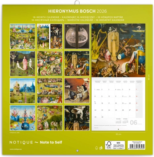 Potopite se v svet fascinantnih in nadrealističnih podob Hieronyma Boscha s tem beležnim koledarjem. Vsebuje pregledno koledarjenje in prostor za zapiske.