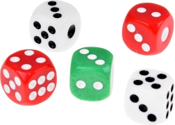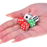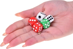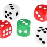 Kocke s kontrastnimi pikami in zaobljenimi robovi za prijetno metanje in enostavno branje rezultatov.