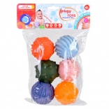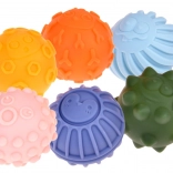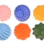 Vsaka izmed šestih žogic ima drugačno obliko in strukturo ter različne izbokline, ki stimulirajo otipljive čute in podpirajo razvoj čutnih receptorjev. To pomaga pri razvoju koordinacije in otipljivih spretnosti otrok.