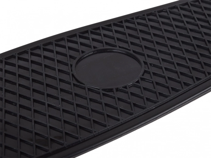 Deska je izdelana iz trpežnega plastičnega materiala, ki zagotavlja potrebno trdnost in stabilnost. Groba površina platforme zagotavlja dober oprijem in varno držo stopala med vožnjo.
