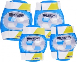 Set vsebuje ščitnike za komolce in kolena, ki zagotavljajo potrebno zaščito ob padcih in so narejeni iz mehkih, a vzdržljivih materialov.